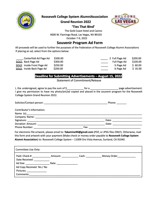 Want to Advertise? For 2-Full Pages, 1-Full Page, Half Page, and Quarter Page advertisements only, please fill out our online order form by clicking the link HERE.